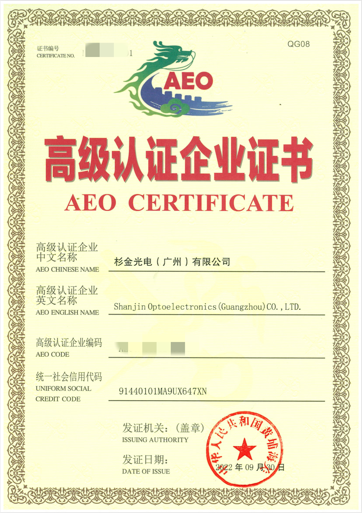 海關(guān)AEO高級(jí)認(rèn)證企業(yè)是能代表企業(yè)優(yōu)質(zhì)商譽(yù)和管理體系的金字招牌。杉金光電是全球規(guī)模最大、技術(shù)領(lǐng)先的偏光片生產(chǎn)制造企業(yè),以海關(guān)AEO高級(jí)認(rèn)證為契機(jī),將用嚴(yán)謹(jǐn)?shù)臉?biāo)準(zhǔn)和業(yè)務(wù)要求,進(jìn)一步提升管理水平、企業(yè)商譽(yù)和綜合競爭力,助力杉金光電未來的發(fā)展,為中國顯示產(chǎn)業(yè)實(shí)現(xiàn)新的超越發(fā)展貢獻(xiàn)力量。