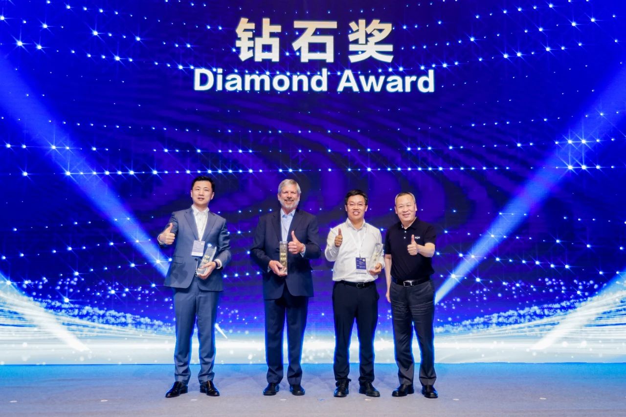 大會(huì)就顯示技術(shù)及物聯(lián)網(wǎng)技術(shù)發(fā)展進(jìn)行深入交流,并對(duì)過(guò)去一年中做出突出貢獻(xiàn)的供應(yīng)商開展了系列表彰活動(dòng)。杉金光電從眾多供應(yīng)商中脫穎而出,獲全球供應(yīng)商最高獎(jiǎng)——鉆石獎(jiǎng)。京東方董事長(zhǎng)陳炎順為杉金光電等鉆石獎(jiǎng)供應(yīng)商頒獎(jiǎng)。頒獎(jiǎng)詞指出,杉金光電“在技術(shù)、品質(zhì)、服務(wù)、成本等方面表現(xiàn)卓越,對(duì)BOE(京東方)的成長(zhǎng)和發(fā)展起到了至關(guān)重要的作用”。