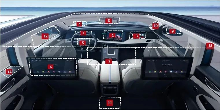 有相關機構預測,未來1-2年,主機廠單車平均屏幕搭載數(shù)量或將達到7個,“液晶儀表+中控屏+抬頭顯示屏(HUD)”將成標配,副駕娛樂屏、流媒體后視鏡、電子外后視鏡等將成為主要選配產(chǎn)品。