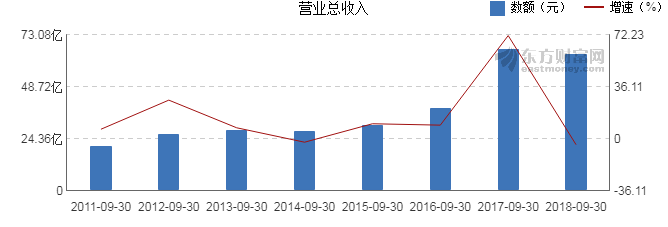據(jù)杉杉股份2018年三季度顯示,前三季度營(yíng)業(yè)收入63.8億元。歸屬于上市公司股東的凈利潤(rùn)10.5億元,同比增長(zhǎng)125.27%。基本每股收益0.939元。