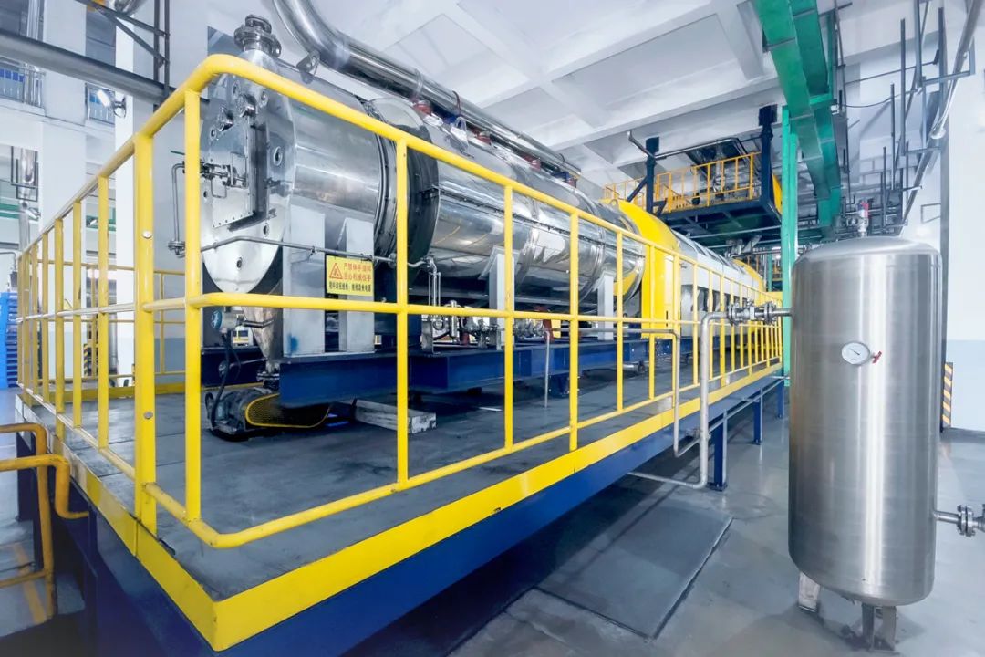 外觀普通而整潔的白色廠房里,三、四層樓高的產(chǎn)線設(shè)備,通過粗細(xì)不同、繁密交織的管道,連接一道道復(fù)雜的工藝。滾動(dòng)的窯爐中,中控顯示跳動(dòng)的數(shù)字背后、指針移動(dòng)的反應(yīng)釜里,是寧夏杉杉能源源源不斷的生產(chǎn)力。